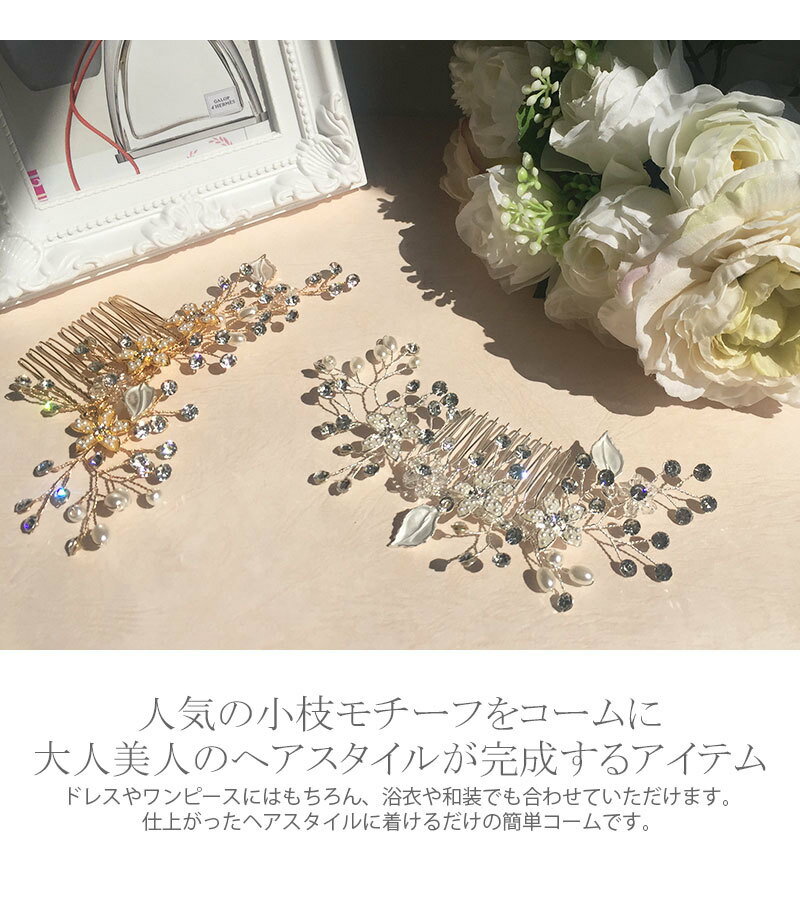 キーワード コーム ヘアコーム くし かんざし 夜会巻き ヘッドドレス ヘアアクセサリー ヘアピン ピン 痛くない パーツ ミックスコサージュ ミックスフラワー 大人 ティアラ 結婚式 花嫁 二次会 2次会 ドレス ミニドレス ジュエリー 和装 和装小物 ブライダル ワンピース お呼ばれ およばれ パーティードレス フォーマル 白 ウエディング ウェディング パーティー パーティ Party PARTY 冠婚葬祭 礼装 披露宴 お色直し ブライダルアクセ ブライズメイド ラグジュアリー オーロラ 上品 エレガント カジュアル ワンポイント 華やか セレブ ゴージャス ビジュー ジュエリー アクセサリー デコラティブ 上品 エレガント フラワー 花 お花 アートフラワー イベント プレゼント 女性 シンプル ギフト GIFT Gift トレンド デート 女子会 ファッション雑貨 ギフト 人気 雑誌 話題 入園式 卒園式 入学式 卒業式 謝恩会 和装 着物 浴衣 髪飾り 発表会 演奏会 デート 女子会 七五三 しちごさん 子供 こども 記念撮影 アクセサリー 小物 成人式 二十歳 20歳 はたち 着物 和装 イベント 記念日 成人式 二十歳 20歳 はたち 着物 和装 浴衣 ゆかた 花火大会 イベント 記念日 オールシーズン 春夏 秋冬 かわいい 可愛い キレイ きれい 綺麗 ロマンティック ガーリー スイート スウィート【メール便 送料無料】コーム 小枝 葉っぱ パール ビジュー 小花 ヘアー ヘアアクセサリー シルバー ゴールド ヘアコーム アンティーク 髪飾り ヘッドドレス コサージュ ヘッドアクセ ウェディング 結婚式 二次会 披露宴 ブライダル お色直し 前撮り 和装 着物 ヘアアレンジ ウエディング 花嫁 華やか かわいい 上品 トレンド 人気 イベント お色直し 発表会 演奏会 成人式 七五三 挙式 海外ウェディング パールとビジューの大人可愛いゴールドとシルバーの小枝コーム。